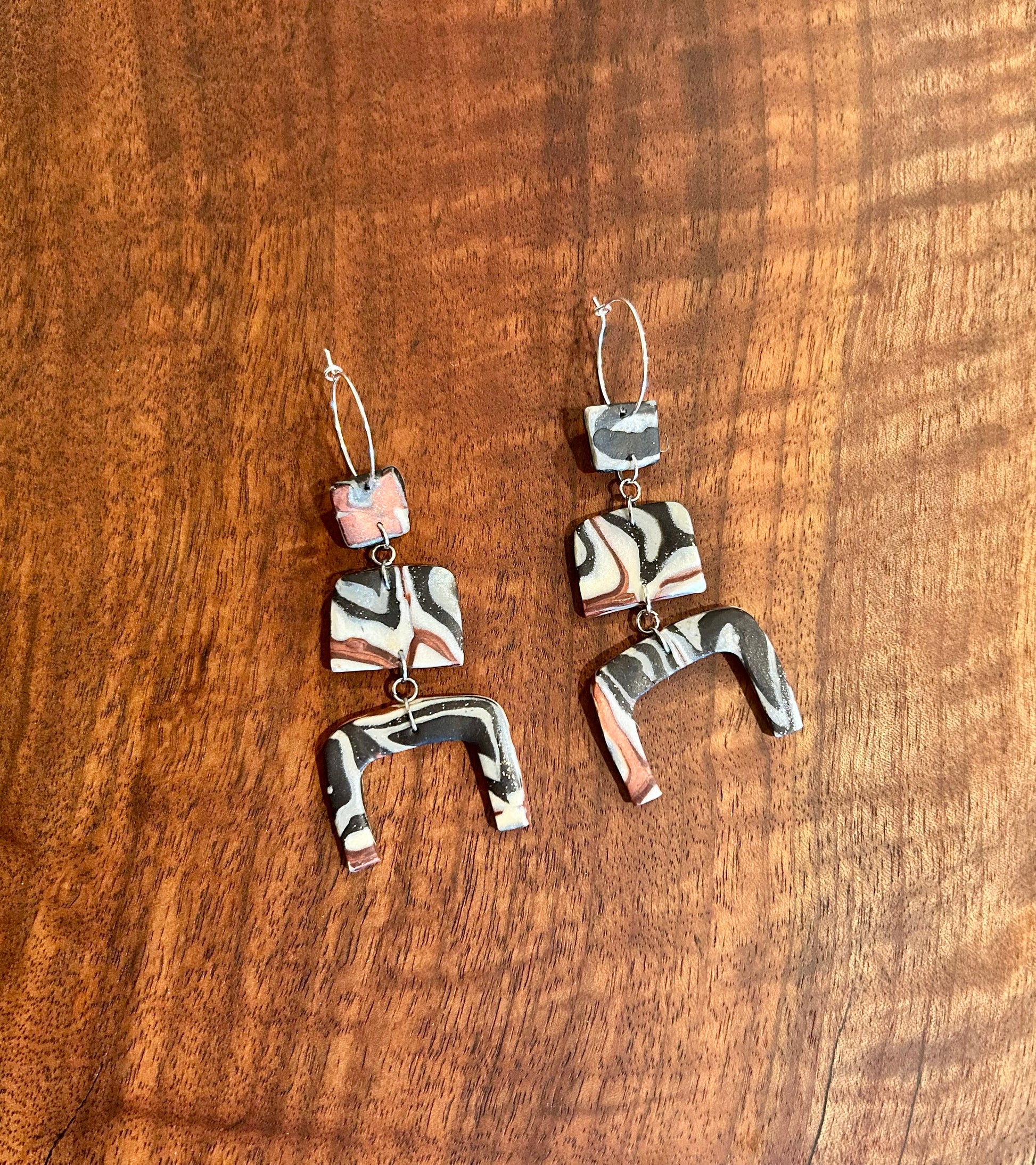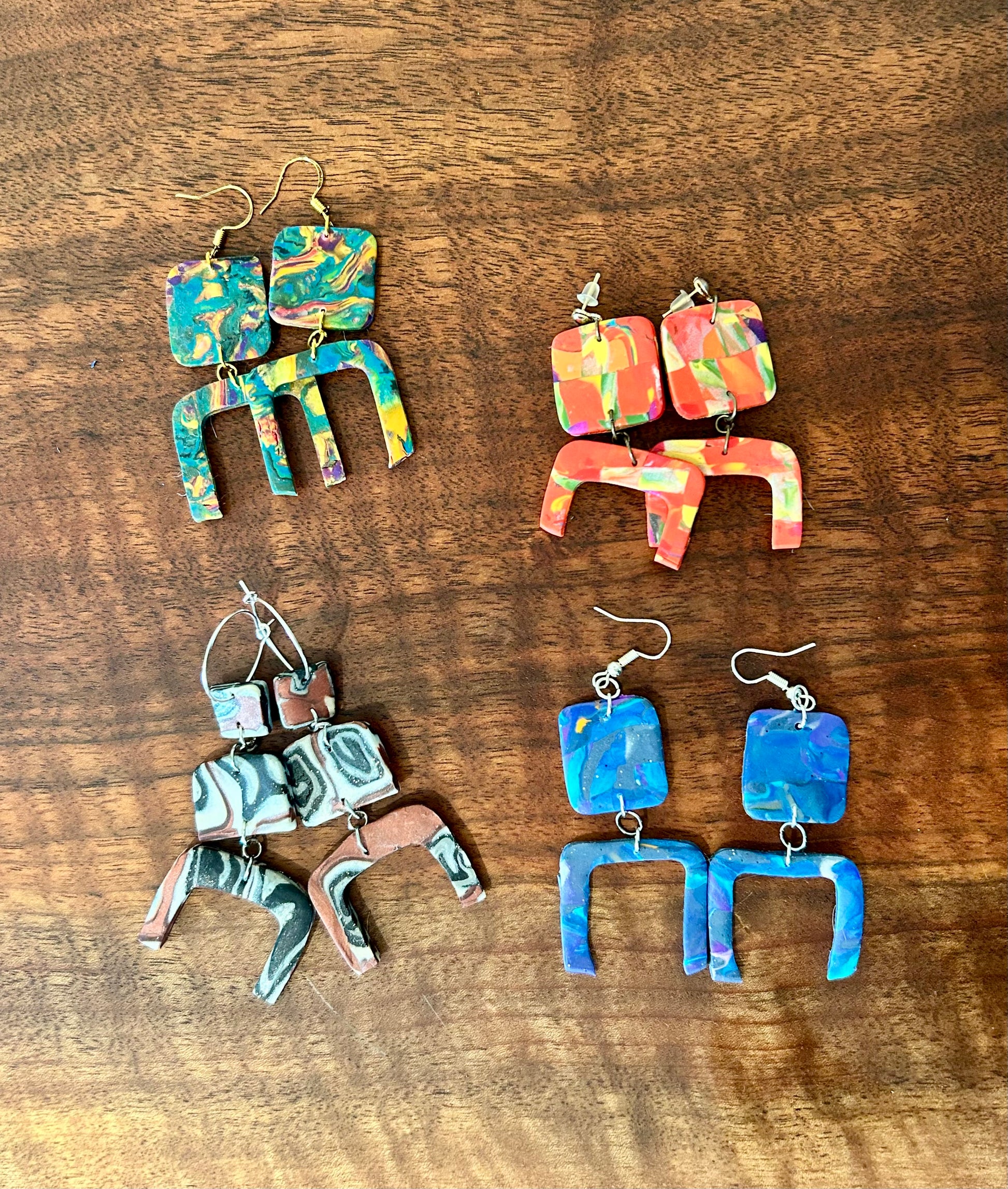Take your pick. Polymer clay and metal hardware. Organic design.